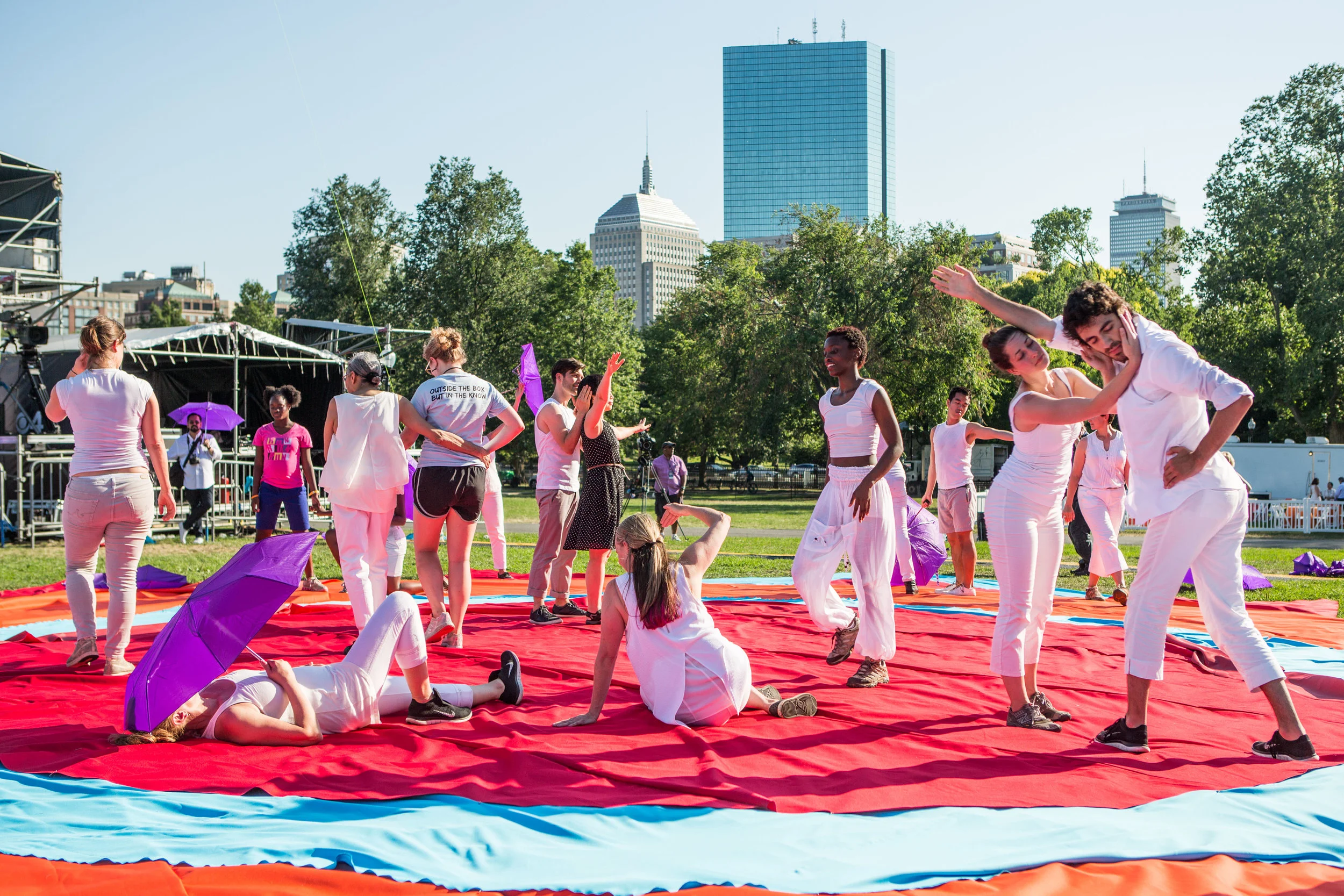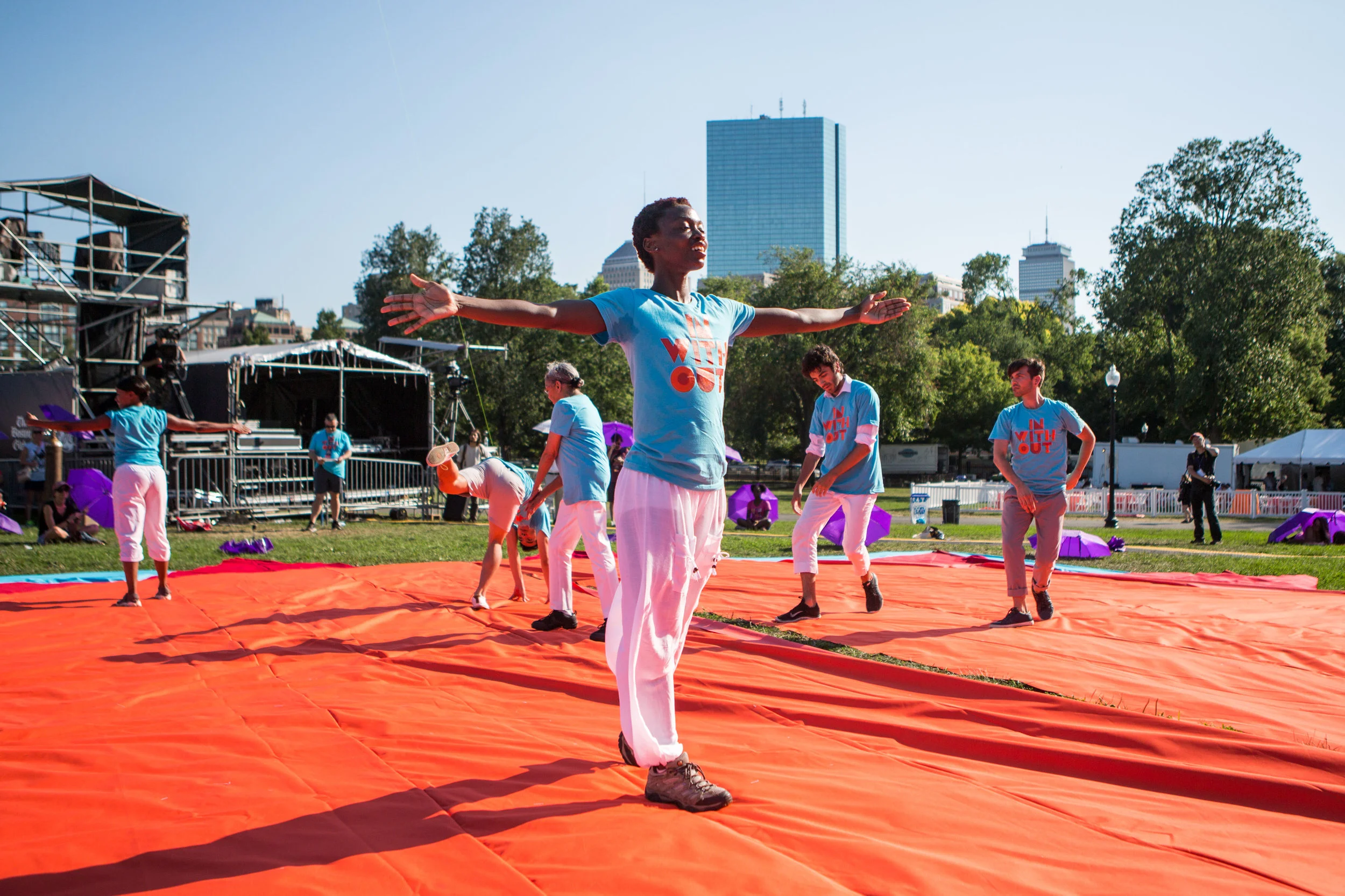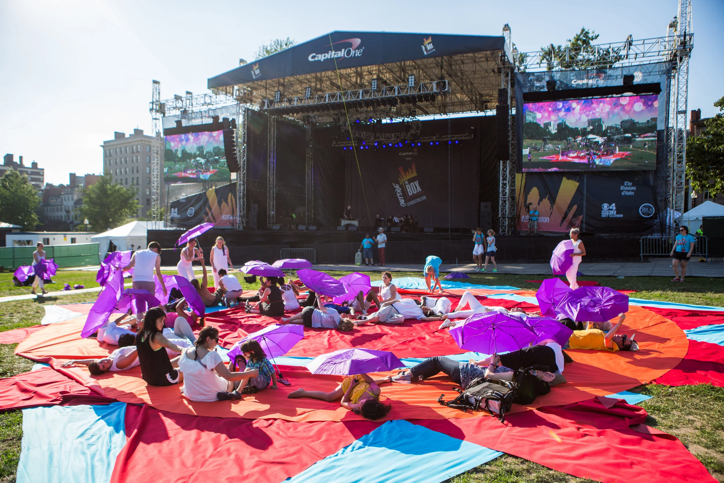 Orchestral music, dance, colors, DJs, drummers and more all meet on the Boston Commons for “In With Out” - a Masary Studios production. Kicking off the Outside the Box Festival, “In With Out” brought dozens of dancers to the commons, and twisted our perspectives on the city with live feed video from multiple angles while a kind of inverted Maypole dance took place on the lawn. The party ramped up as experimental DJ/percussion duo [BABA] took the platform stage for a raucous journey through sample sounds, featuring many special guests - including dancers, musicians & poets.