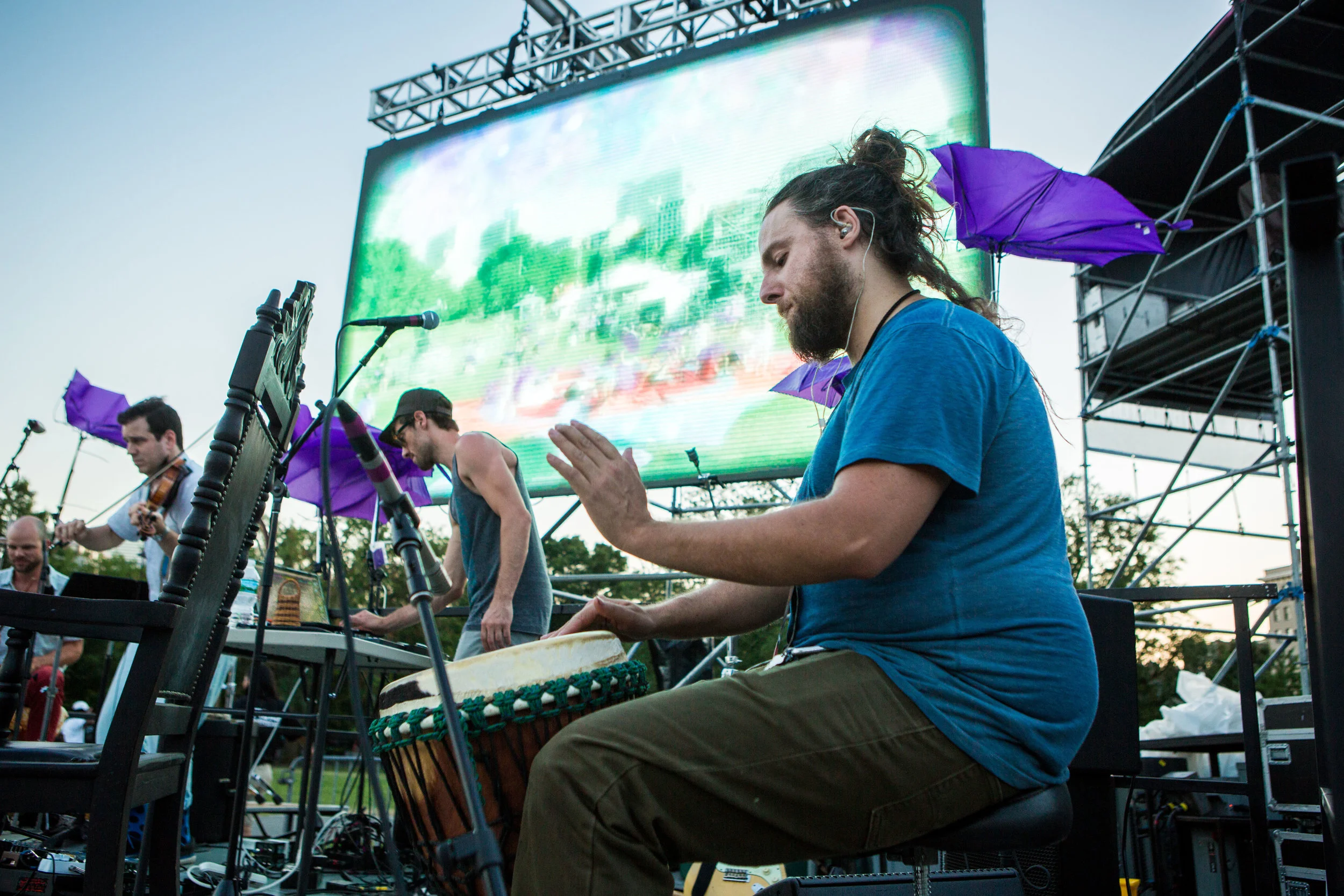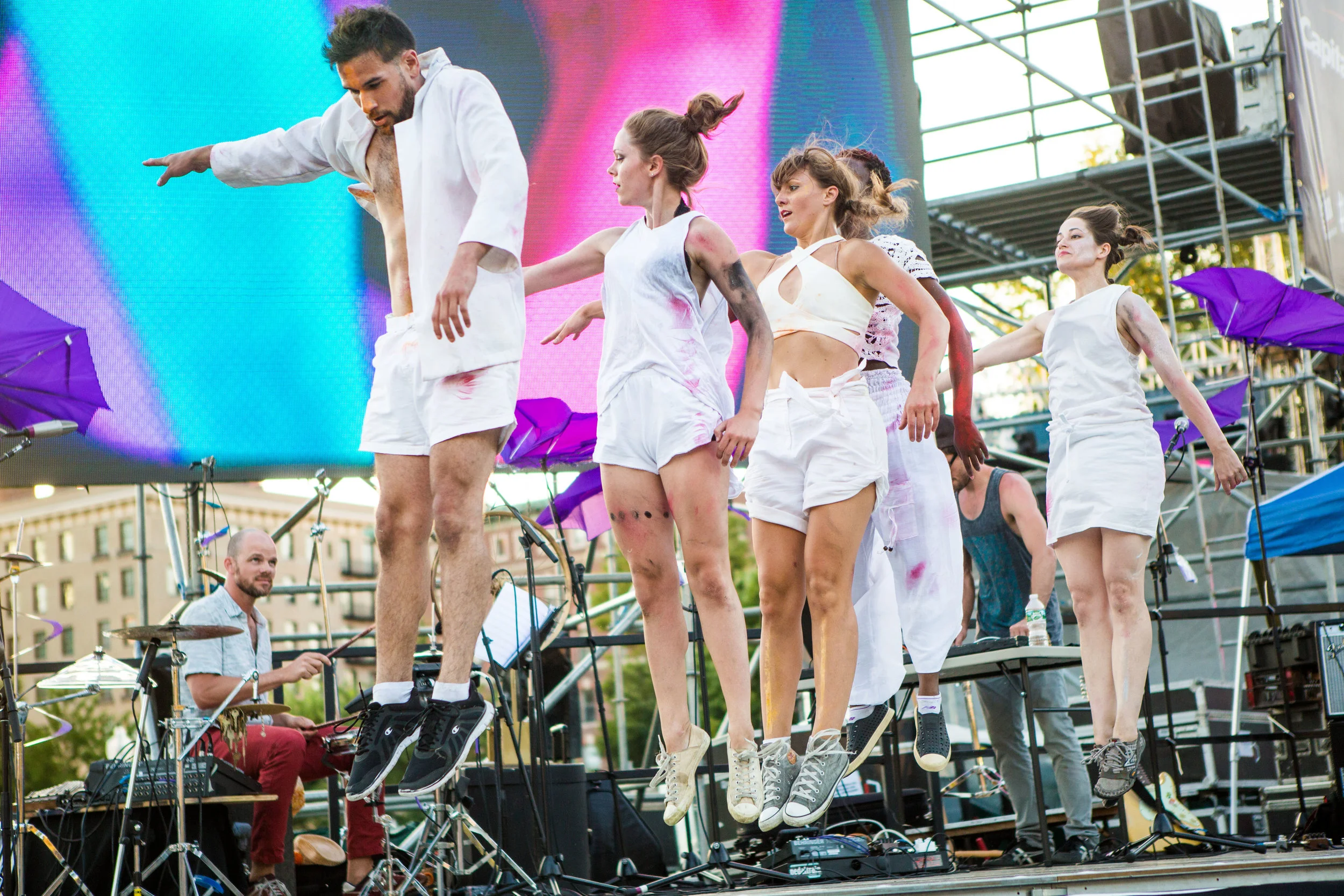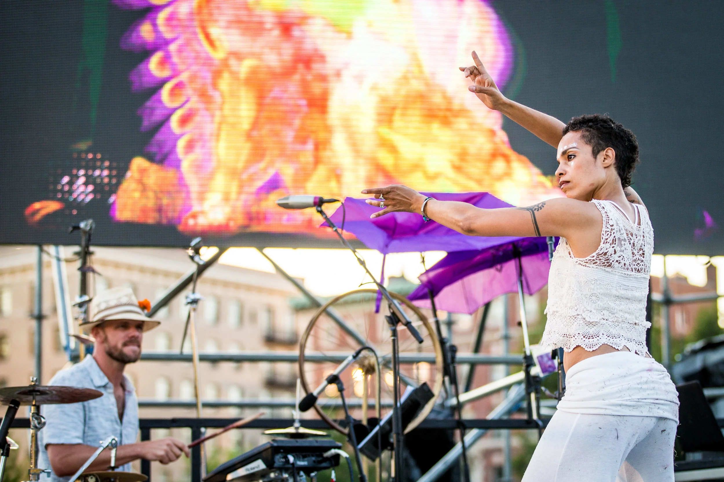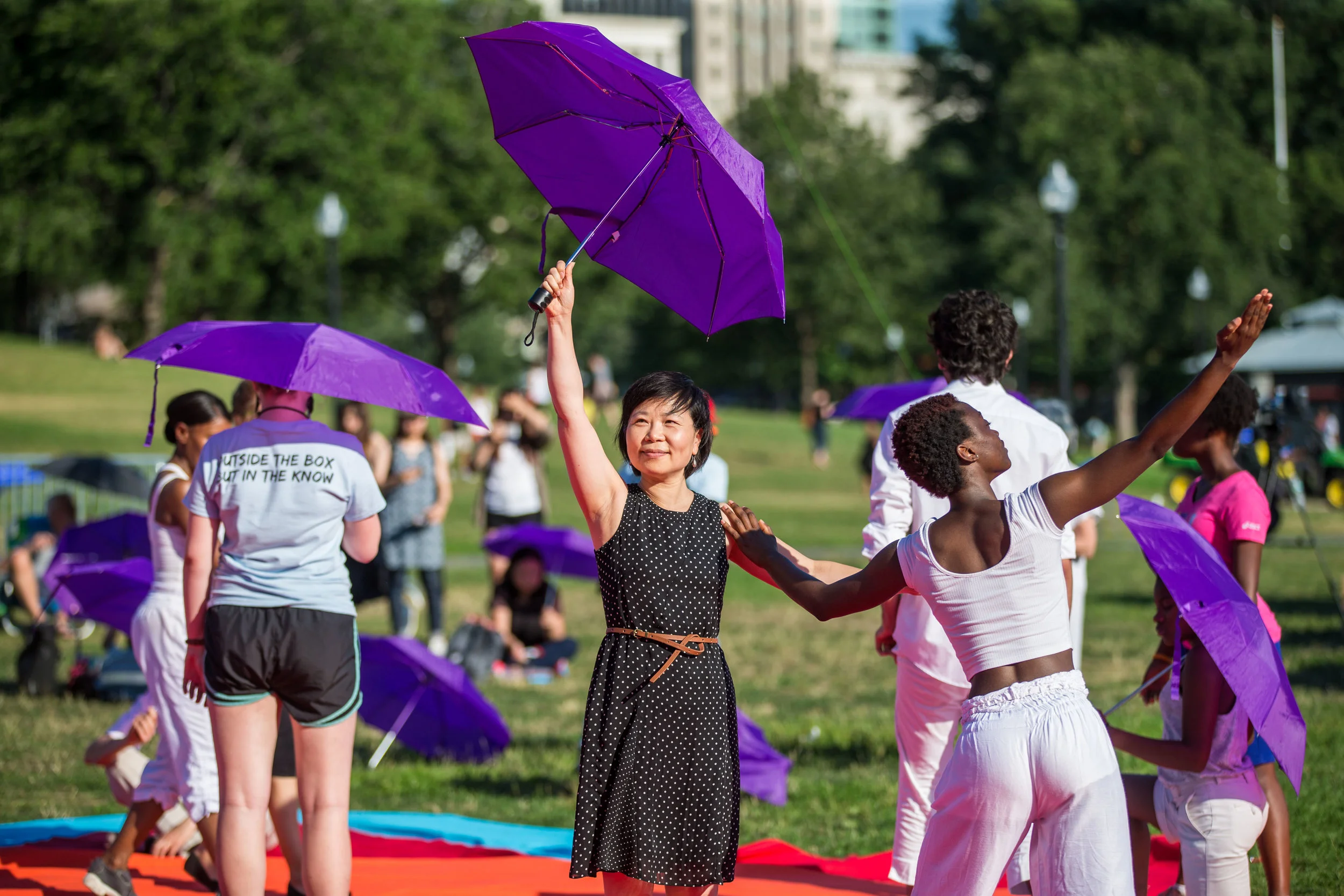 Orchestral music, dance, colors, DJs, drummers and more all meet on the Boston Commons for “In With Out” - a Masary Studios production. Kicking off the Outside the Box Festival, “In With Out” brought dozens of dancers to the commons, and twisted our perspectives on the city with live feed video from multiple angles while a kind of inverted Maypole dance took place on the lawn. The party ramped up as experimental DJ/percussion duo [BABA] took the platform stage for a raucous journey through sample sounds, featuring many special guests - including dancers, musicians & poets.