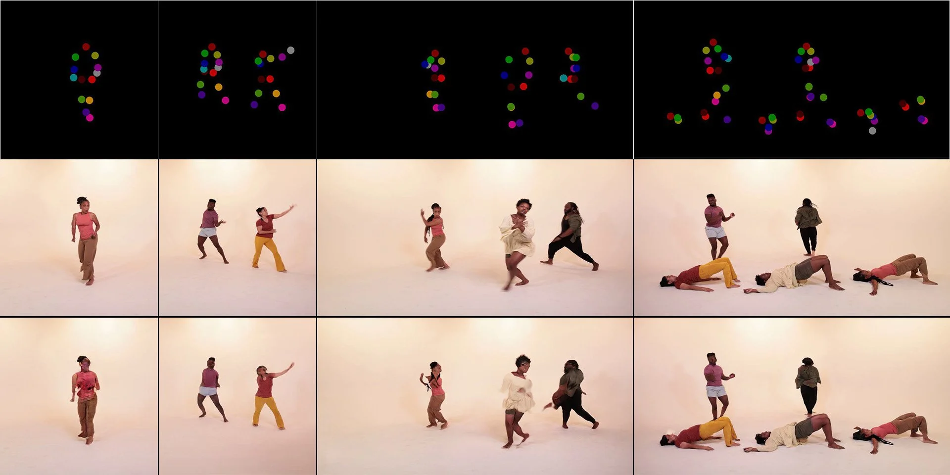 The core neural network in Data Choreographics is trained using a custom image corpus created for the artwork. This image set is the result of studio video shoots with six Boston- and Cambridge-area dance troupes. Each group was invited to contribute to the project and was asked to perform both pre-set and improvised movements that exemplify their own unique choreographic and performative voices. As such, the leader or choreographer of each group was encouraged to present and explore the choreographic ideas that they feel the greatest resonance with. While some direction was provided by the MASARY Studios creative team, we attempted to keep this direction primarily in regards to camera position and view, entrances and exits. Each group was also encouraged to present movement material using a variety of groupings and configurations – solos, duos, trios, etc. – as well as a variety of costumes that they perform in.
