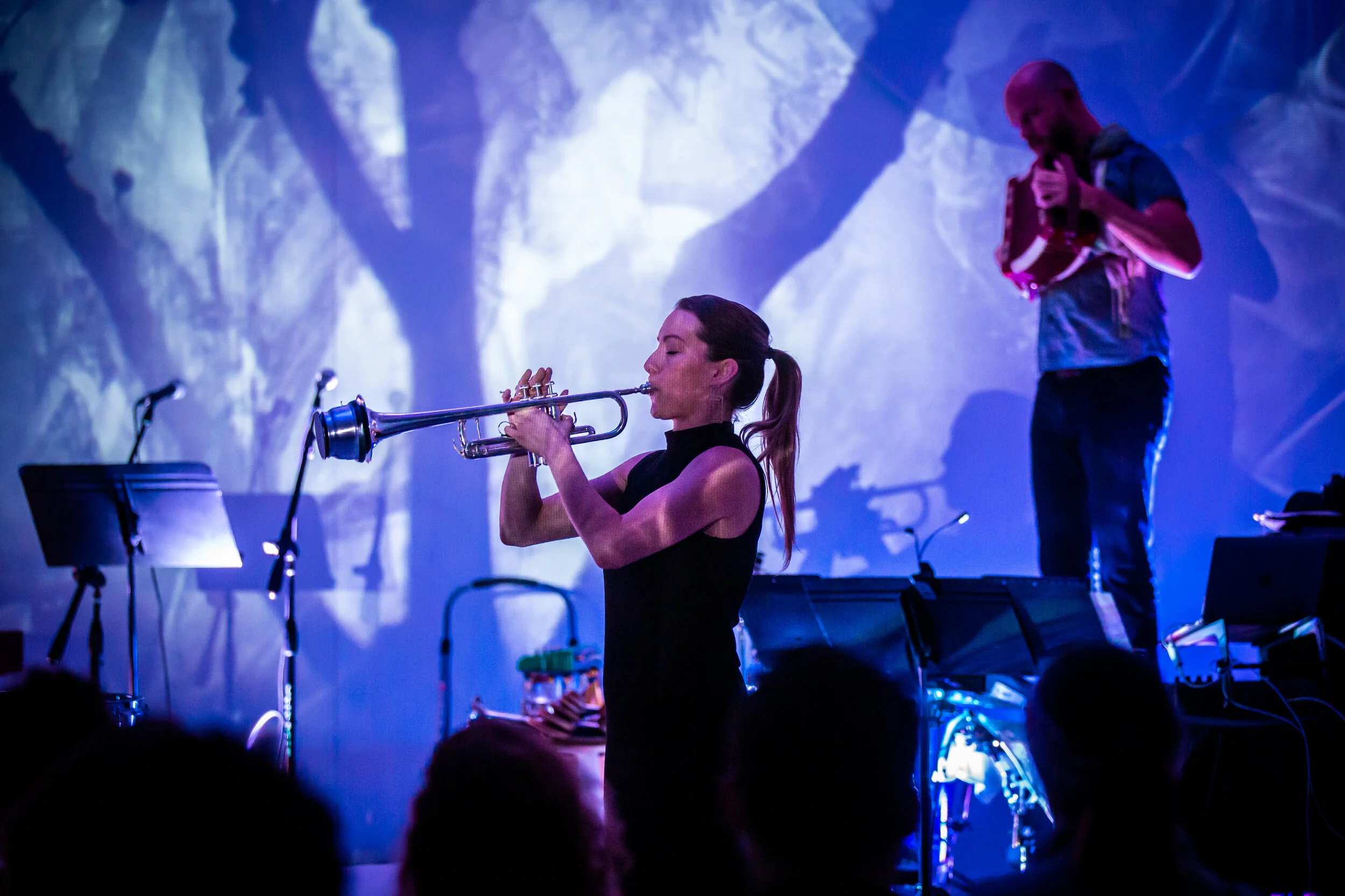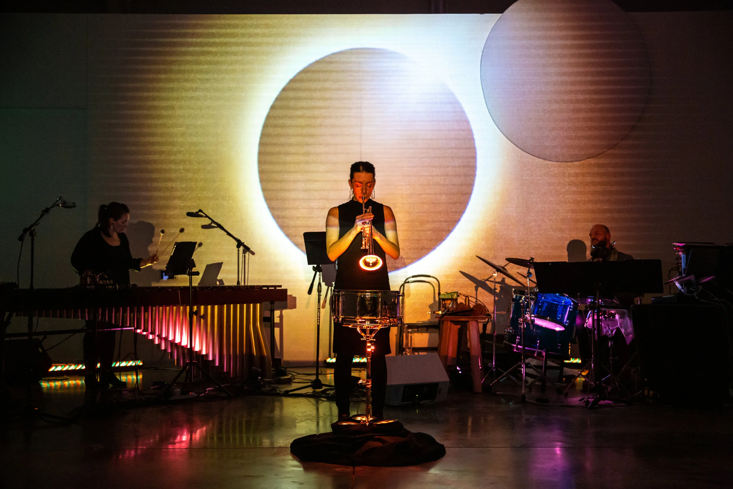 “Koizumi” - Hearn’s adopted Japanese family name - features Jean Laurenz, Hearn’s Great-Great-Grand-Niece, on trumpet and vocals. Together with MASARY’s Maria Finkelmeier on marimba, percussion, and keyboard, Ryan Edwards on drum set and electronics, and Sam Okerstrom-Lang on visuals and lighting, the quartet explores Hearn’s life and artistic output, realizing his multidimensional contributions through a blended performance of digital light and sound. Through original composition and projection art, the team highlights how Hearn married cultural perspectives with literary astuteness, becoming a leader in social justice and cultural preservation.