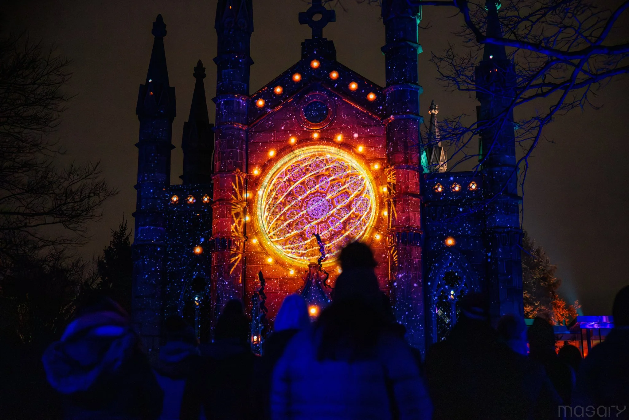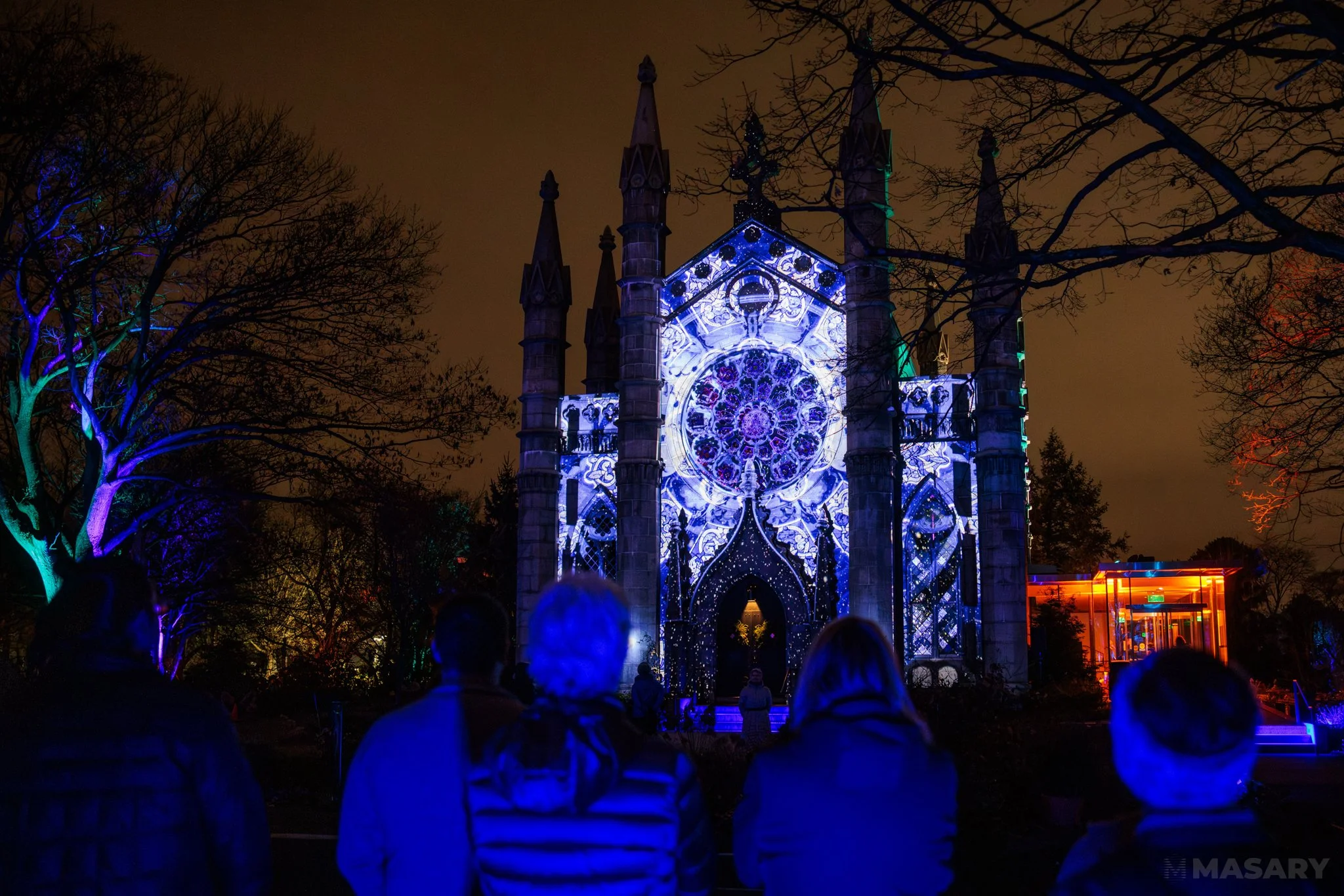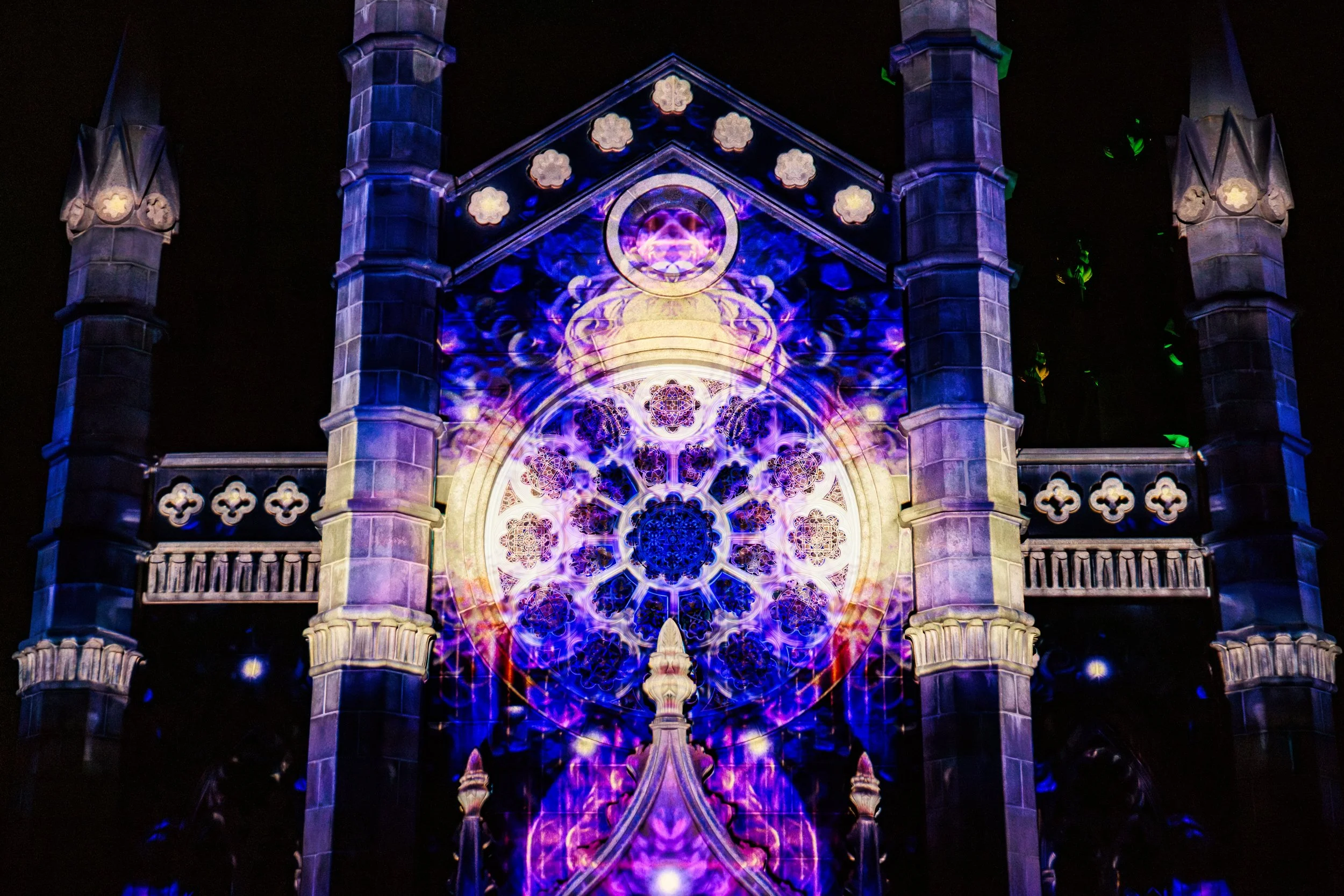 Aether is an audiovisual installation exploring the interplay of light and shadow, tracing their movement across the architecture before converging in harmony within the rose window. A gesture towards the darkest days of the year during the winter solstice when the need for light, metaphorically or literally, is a prominent aspect of nature and emotional landscape.