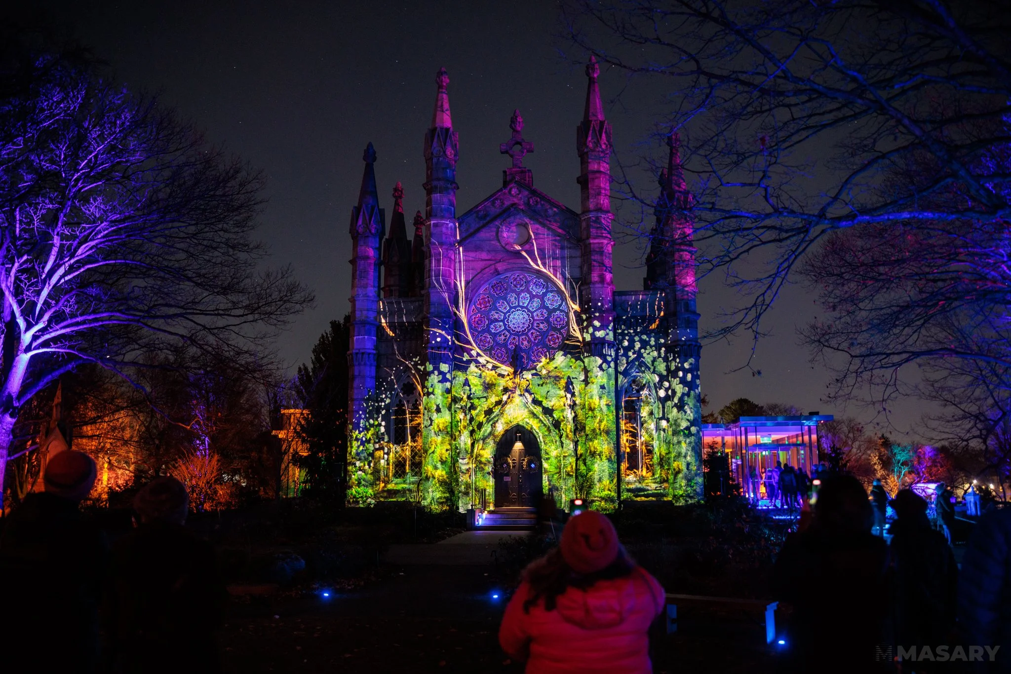 Solstice Canvas is an ongoing artwork series created for Bigelow Chapel at Mount Auburn Cemetery part of SOLSTICE: Reflections on Winter Light. Two annual artworks have been crafted for the facade since 2021 offering moments of reflection and poetry interrelated to Mount Auburn Cemetery, nature, the winter solstice moment, and contemplation. Artworks to date can be viewed below.