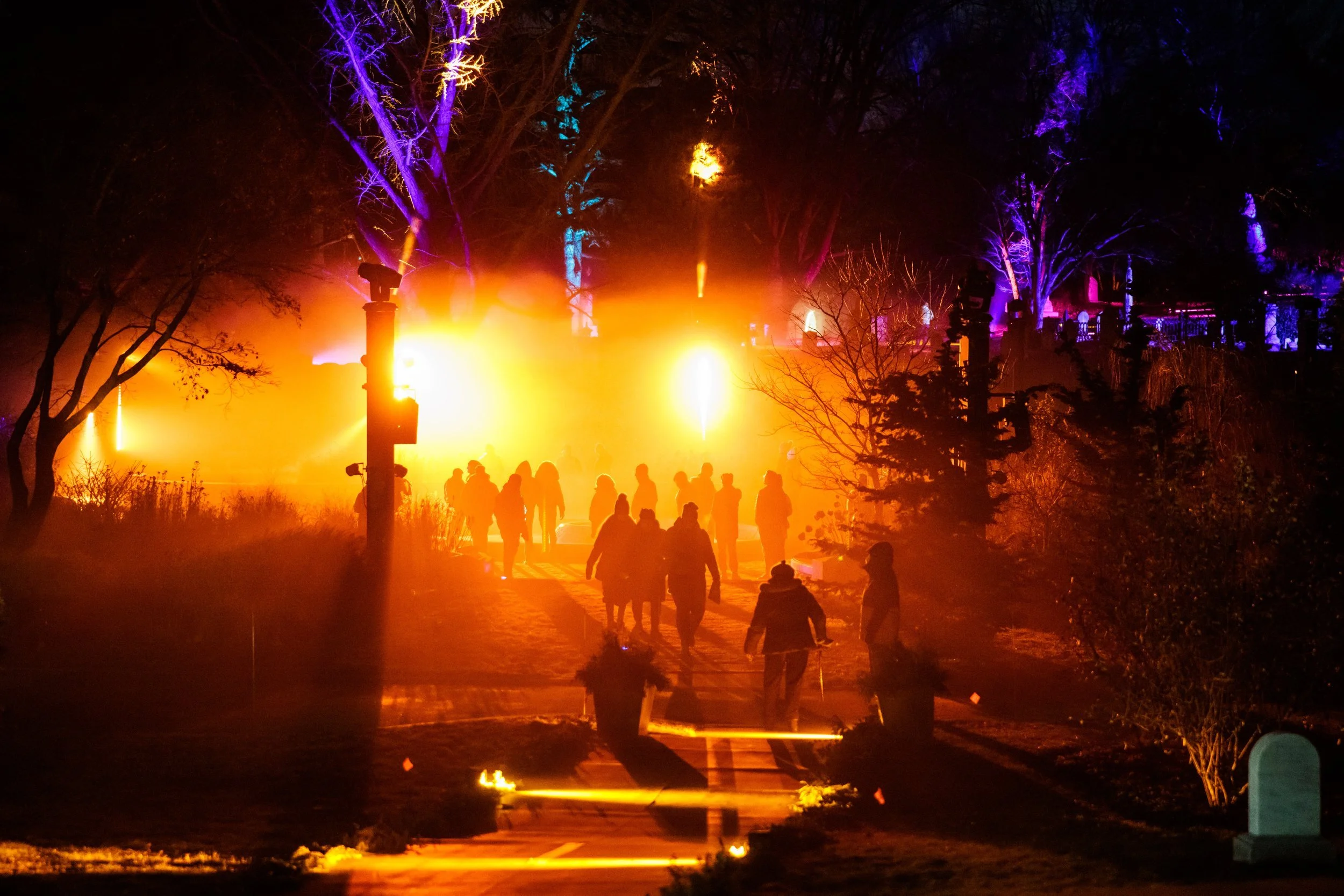 Phase Garden Light and Sound Installation - MASARY Studios 2022. (12.2 Spatial Audio via Astro Spatial Sound engine) Photo by Aram Boghosian - Presented by Friends of Mount Auburn